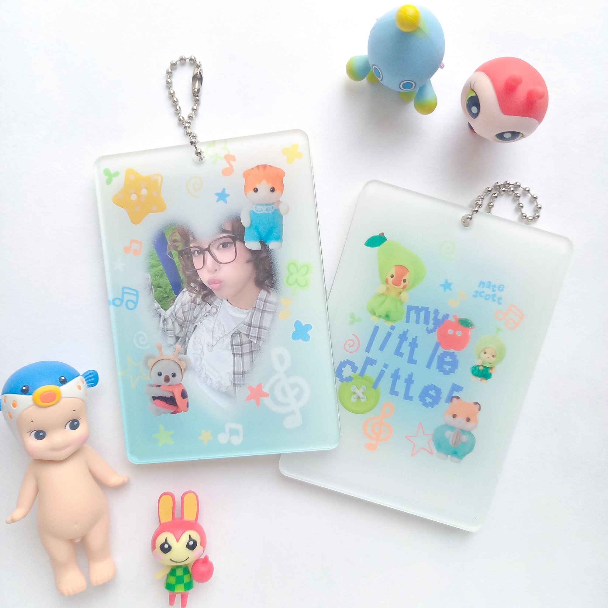 -these fit standard 5.5cm x 8.5cm photocards. the opening is roughly 62mm wide so you will be able to fit photocards fitted with small sleeves inside <3